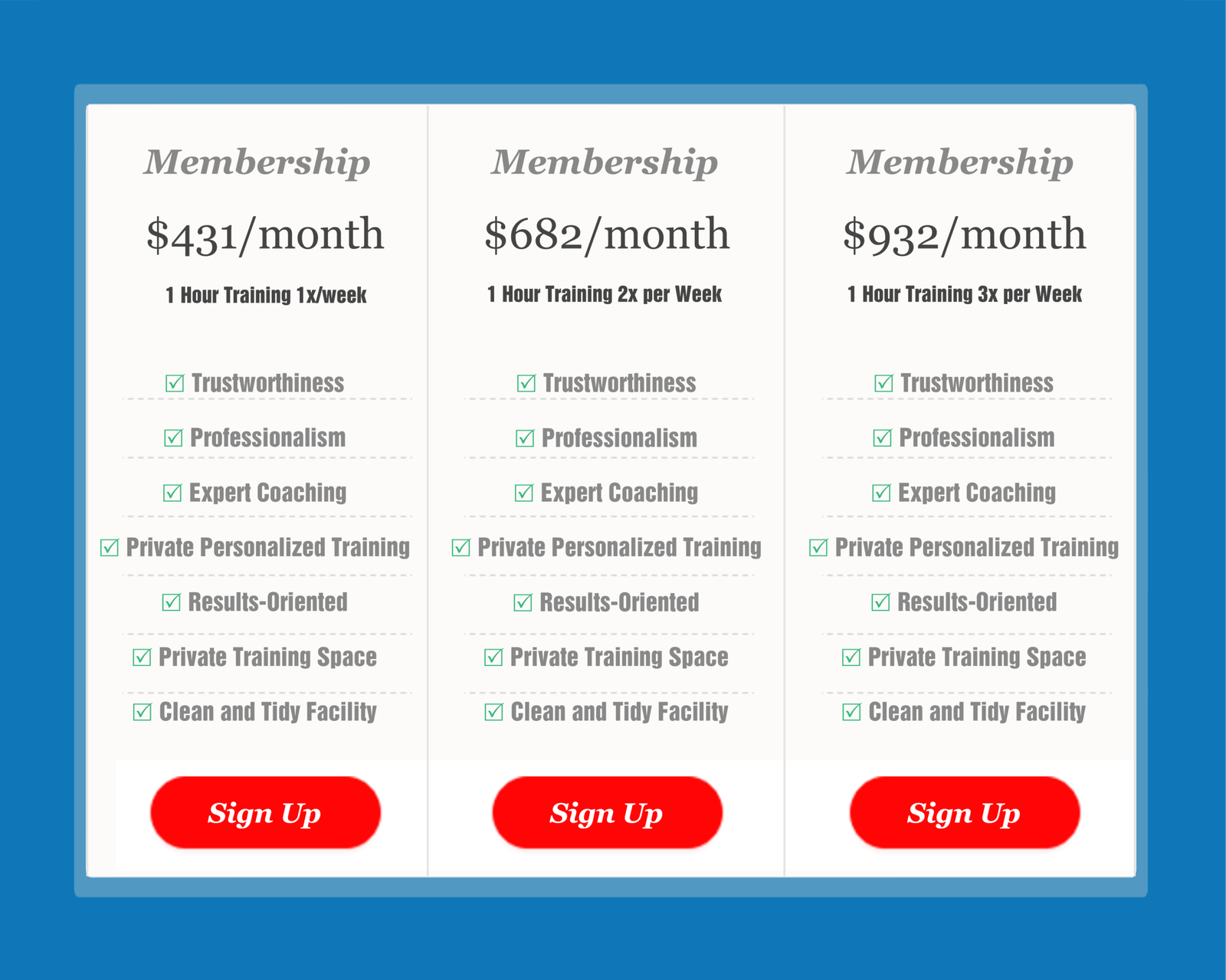 MONTHLY RATES FOR PRIVATE TRIO (3 PEOPLE) TRAINING PACKAGES