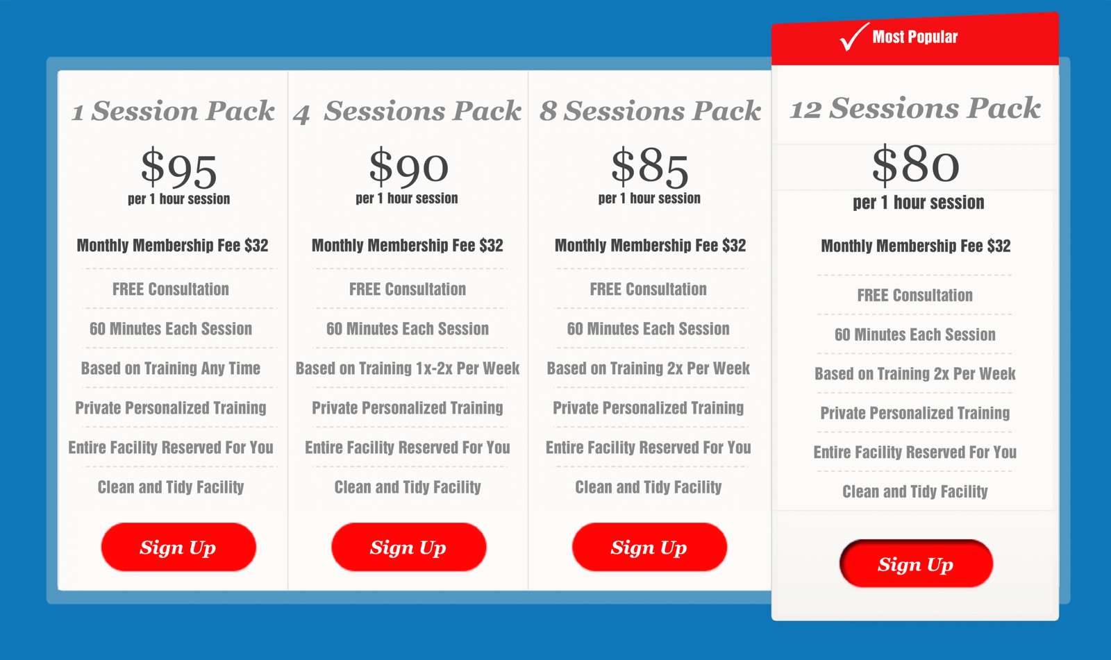 POPULAR TRAINING PACKAGES FOR CLIENTS TRAINING 2X PER WEEK