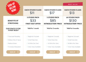 Stretching Class Pricing Table_Website Published September 27, 2025 at 2560 × 1858 in Beginner Stretching Classes in Durham NC ← Previous Next →